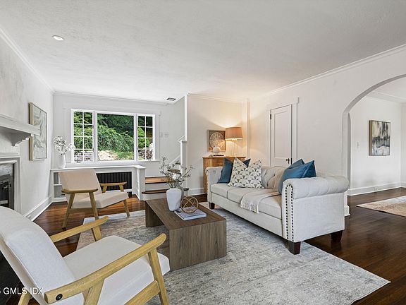 Nestled high above one of the most desirable streets in Cos Cob, you will enter into a timeless light filled home ready for a new generation. A classic living room with wood burning fireplace, sun porch/office and formal dining room, all with period arches and great views. The recently updated kitchen leads out to an expansive deck overlooking the large private backyard. Three bedrooms plus an additional third floor bonus room, perfect for a fourth bedroom or private office space. Enjoy the short stroll to the bustling town center with top rated schools, welcoming public library, and the best dining options in town. Additional FAR available.
