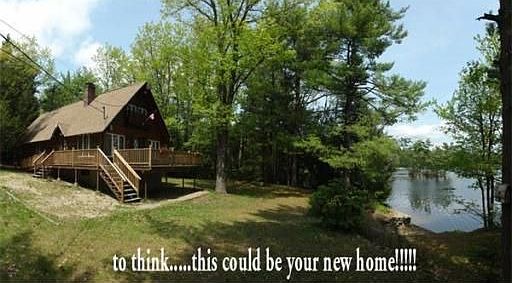 Total privacy on 1.28 acres of the best, most private lakefront you can find!! 200+ ft of shore/ sandy beach on deep Lake Winnekeag. 1st level offers open kit-dinette-"great rm" 23 ft long with wood stv, rustic wood finish, cathedral ceiling and picture windows overlook 24' deck. guest br, and hall bath, plus master BR is 13x23 with a mstr bath including laundry, roll-in shower. Upper level has slept 8-10!! 48 ft bsmnt with high clgs ezy to finsh, huge dbl garage/walk-up loft, wood shed