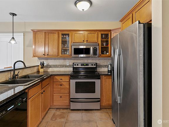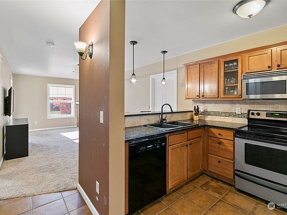 Stylish two-bedroom, two-bath ground-floor condo in popular Cypress Place. Charming warmth abounds with an open-flowing floorplan. High-end finishes in the kitchen include honey-hued cabinetry, granite counters, tile backsplash, GE black/stainless steel appls & tile floors. Light-filled Living room with lots of natural light, fireplace & access to the patio. In-unit full-size new washer/dryer. Newer water heater/dishwasher. This secure complex has an elevator, fitness center, covered bike storage Gazebo area, and 2 assigned parking spots(one covered). Pets allowed. Prime Bellingham location -Close proximity to I-5, Western Washington University, Fairhaven, shopping, hiking/biking trails, & restaurants. Daily shuttle to WWU.