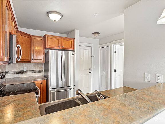 Welcome to this sunny, south-facing studio condo in a prime location in the Cypress Place Condominiums! This corner unit offers abundant natural light and a private, covered deck overlooking the peaceful courtyard—perfect for relaxing. The modern interior features stainless steel appliances, in-unit washer and dryer, and a full bathroom. Enjoy the convenience of water, sewer, garbage, gym access, and gated entry all included in the dues. One assigned parking space. Located close to WWU, shopping centers, bus stop, and all of Bellingham’s conveniences, this condo is ideal for students, first-time homebuyers, professionals, or anyone looking for a low-maintenance lifestyle. Don’t miss this opportunity!