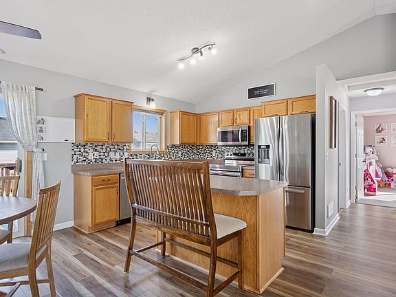 This home is beautifully decorated featuring a spacious entryway and vaulted ceilings in the living room. The kitchen offers abundant cabinetry, a central island, and an informal dining area that opens to a deck and fully fenced backyard—perfect for entertaining or relaxing outdoors.