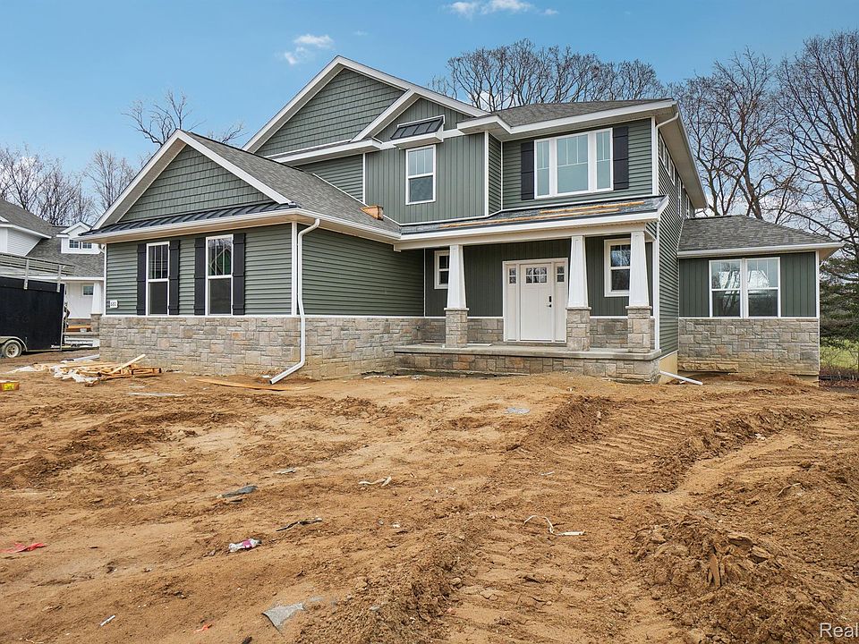 Discover incredible value in this stunning craftsman style home by Capital Custom Homes on culdesac homesite with stunning views of the protected woodlands and offering over 4,000 sqft of finished living space with 5 bedrooms and 3.5 baths. The main floor features an open two-story foyer, a sunroom for home office, and a mudroom off the insulated 3-car garage. The spacious open-concept living and dining areas lead to a chef’s kitchen with built-in appliances, amazing layout with loads of cabinets, a corner pantry, quartz countertops, and a large eating nook with a custom hutch and wine fridge. The oversized great room has a gas fireplace with stone and barn beam mantle. Upstairs, the luxurious master suite boasts a one-of-a-kind walk-in closet and a spa-like bath with tiled shower. Additional features include a 2nd-floor laundry room, and three additional bedrooms. The finished lower level offers a game room, an extra bedroom, and a full bath. This home is built with superior insulated (R16) basement walls, a 96% high-efficiency furnace, 50 gal water heater and 200-amp electrical service, ensuring comfort and energy efficiency. Located in the vibrant Marion Oaks community with sidewalks, streetlights, a sports field, and a future clubhouse and swimming pool, this home also benefits from low Marion Township taxes and convenient access to I-96/D-19 for easy commutes to Ann Arbor, Lansing, and Novi. 30 days to completion! Beat the bidding wars. Contingencies considered.