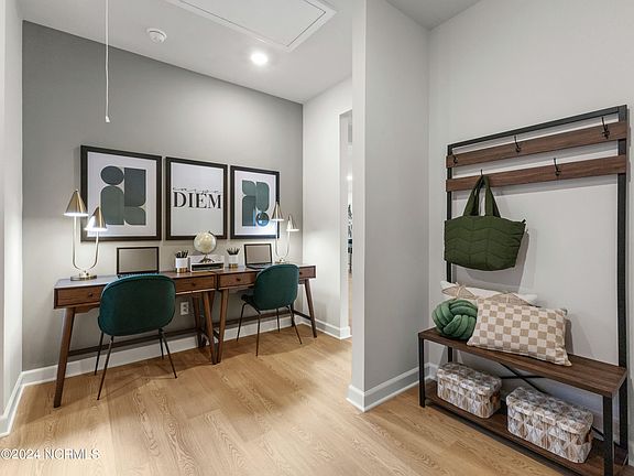 Move in Oct 2024! Photos are of builder model home. Answer emails from the comfort of your home in the designated work/study area. The nearby flex space is perfect for a craft room or media room. The Kensington's luxurious primary suite features an elegant tray ceiling, dual sinks, and a walk-in closet. Calabash Station offers the ideal coastal lifestyle. Offering four sprawling ranch-style floorplans, each with versatile flex spaces and signature, energy-efficient design, homeowners will enjoy modern living in a serene community. Additional amenities include scenic walking trails and a sparkling swimming pool and cabana. Each of our homes are built with innovative, energy-efficient features designed to help you enjoy more savings, better health, real comfort and peace of mind.