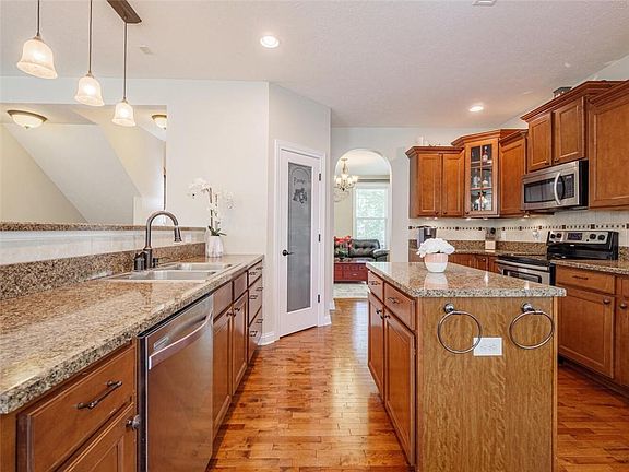 A rare opportunity in The Groves at Beechwood Farms! 5B/3B Open concept main floor plan w 10.5ft + ceilings, 2 story foyer, great room w wood-burning fireplace. Surround sound wired. Main floor bedroom with bay windows/seat/storage. Crown molding. Custom kitchen cabinetry, center island, oversized pantry. Hardwood floors. 2nd floor laundry room, Large master suite/bath, vaulted ceiling, marble vanities, huge walk in closet. Corner lot adjacent to wooded common area, large deck and fenced back yard. Deck Pergolas stay. Hot tub area with electric. Nitro floor tiles (2020) in heated garage. Lift and air hose negotiable. Garage TV stays. Basement bath rough in. Concrete edged landscaping. Great room cabinetry and Master bedroom cabinetry stay.