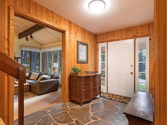 OPEN SUNDAY, 10/13, 11-1. Introducing, “Jewel of the Pines”, a cherished home on the market for the first time in over 25 years. Sitting on 3+ acres, the property is nestled in the trees but gets lovely sun from the south and west. The home captures the essence of a ski chalet with a large living room featuring tongue and groove cathedral ceilings, a cozy fireplace and warm wood detailing. The kitchen is roomy with ample counter space and an adjacent casual living/dining area. The main floor also includes a bedroom, bathroom, large mud/laundry room and a bonus room that currently serves as a craft room. Upstairs are two large bedrooms, both with ensuite full baths and large walk in closets. Off of the attached, 2-car garage is a large, heated, unfinished basement that provides space for storage and projects (or an extensive wine collection!). Outside is where this property really shines! French doors lead to the outdoor living space, creating a sense of continuity from inside to out. The elevated landscaping and native plants blend with the surrounding nature to create a lovely space to relax and enjoy these mountains that we call home. This includes a large, partially covered deck and patio area. The decking is composite and new in 2023. The property borders a 70 acre parcel owned by National Wildlife Federation, creating an extra buffer of privacy in addition to there being a neighborhood common area nearby. Located in the coveted Grant Creek neighborhood, enjoy easy access to trails, Hellgate school district and the nearby Snowbowl Ski Area, all within minutes of town. Call Megan Twohig; (406)370-2895, or your real estate professional.