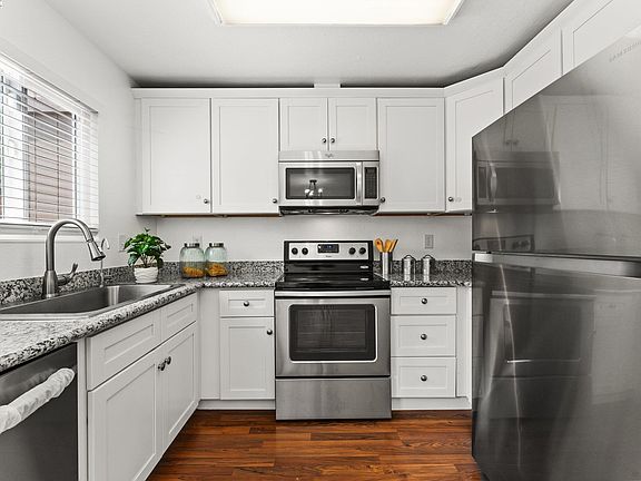 Welcome home! This beautifully updated 2-bedroom, 2-bath contemporary townhouse is perfect for your growing family. Picture lazy Sunday mornings in the large backyard—ideal for playdates, picnics, and creating lasting memories with extra storage for your every day needs. The dramatic laminate flooring adds a touch of modern flair, while the freshly updated granite kitchen with stainless appliances is a chef’s dream. But wait, there’s more! You will adore the spacious yard with Patio. The master bedroom is spacious enough for bedtime stories, and the second bedroom, with its new laminate floors, is ready for little feet to patter around. And the perks keep coming: two assigned parking spaces right in front (one covered), convenient inside laundry with a front-load washer and dryer included, central heating and cooling and a location that’s close to downtown, top-rated schools, and parks. This impeccably maintained gem is waiting for your family to write its next chapter.