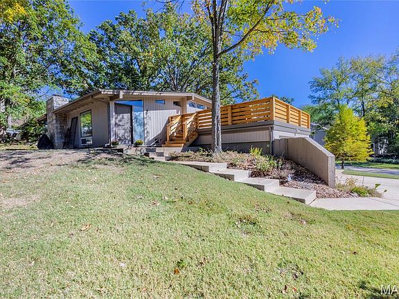 Designed by Famed St. Louis Mid-Century Architect, Ralph Fournier! Sophisticated mid-century modern masterpiece, meticulously renovated to deliver luxury living at its finest. Expansive open-concept design framed by walls of glass creates a seamless flow between indoor elegance and outdoor serenity. The expansive living room, anchored by a designer fireplace, provides the perfect setting for cozy winter evenings, while the newer deck extends your living space outdoors—ideal for al fresco dining and gatherings under the stars. The gourmet kitchen is a showpiece—custom cabinetry, premium stainless appliances, and an entertainer’s island anchor the heart of the home. The custom built-in coffee and beverage bar offers a touch of indulgence—perfect for quiet mornings or effortless entertaining. Retreat to the private primary suite or host unforgettable gatherings in the stunning outdoor entertainment space. Set on a generous lot within the award-winning Kirkwood School District, this residence offers rare style, comfort, and architectural distinction—all with the convenience of a 2-car attached garage. Enjoy updated systems and high-end finishes that ensure both comfort and peace of mind. Experience refined living in this sun-drenched Kirkwood residence, where timeless elegance meets modern sophistication. Every room is designed to capture abundant natural light, creating an inviting ambiance throughout the home.