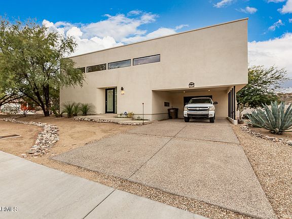 This unique contemporary home showcases 2 beds, 2 baths, 1,583 sq. ft. located on lots 1 & 2, corner lot and has a 2 car carport plus small attached storage space. Very spacious great room w/ soaring ceilings. The modern kitchen offers beautiful cabinetry, stainless steel appliances, plus washer/dryer combo. Downstairs bath has jacuzzi bathtub, upstairs features 2 spacious bedrooms w/ landing space. Bath w/ large walk-in all tile shower, space saver closets, tons of natural light from the many windows. Low maintenance landscape in front and backyard. Large open space in back of home with gorgeous views of mountains and sunsets. New a/c unit replaced in June 2020. Don't miss out on this great property located just 1 mile away from downtown Wickenburg. Schedule your showing today!