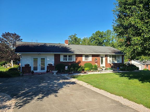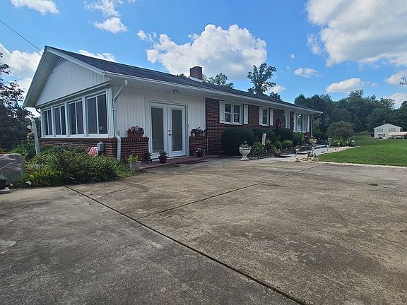 Nice brick home on 5 acres in Patrick Springs. 3 bedrooms with an eat-in kitchen, sun room, walk-in shower, and full basement. Full bath on the main floor with a walk-in shower. Partial bath in the basement. Douche detached carport, concrete driveway, detached oversized garage, and nice garden spot. Space for animals.