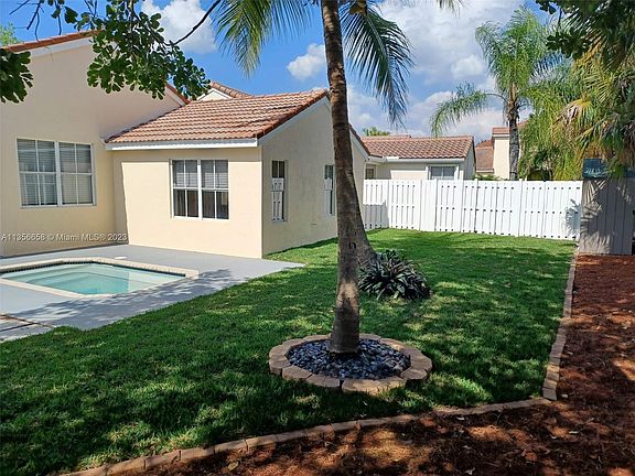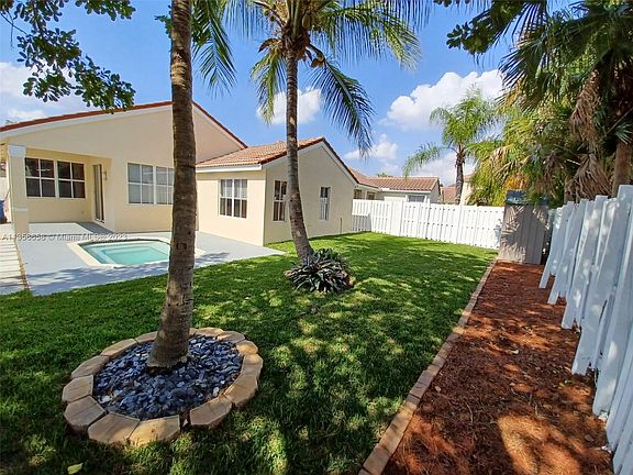 Beautiful single family home. 3 beds, 2 baths located in Weston North Lake, 24-hour guarded gated community. This amazing home features a covered entrance with high ceilings, big windows, tile and laminated floors. Wonderful master bedroom with walk-in closet and great bathroom with tub and separate shower area. New upgraded kitchen appliances and A/C unit. Large back yard with a beautiful pool / massage jets. Two covered car garages and two driveway parking spaces. Weston is well known for having many high rated schools. At walking distance from this home, you will find Eagle Point Elementary school, at 1.8 miles, the Tequesta Trace Middle School, and at 4.5 miles, the Cypress Bay High School. All with an A+ rating. Great community amenities. A MUST SEE HOME!