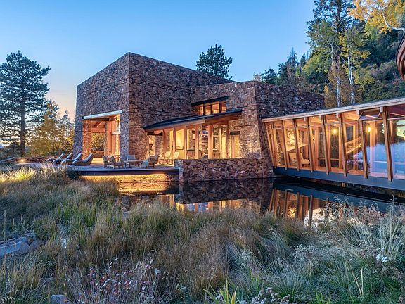 An architectural masterpiece set on 35 acres at the base of Hawn Mountain, PaGomo is an extraordinary retreat. The home's artful design offers serenity and invites inspiration with thoughtfully designed pods nestled in a tranquil Aspen grove bordering National Forest. A glass-walled covered bridge floats over a reflective pond connecting the primary wing to the home's grand living spaces, perfect for hosting large gatherings or enjoying quiet family time. Crafted with site-harvested stone, PaGomo echoes its stunning alpine surroundings. Sculptural bow trusses, flying beams, and interlocking interior elements blur the lines between indoor and outdoor living, creating a fluid and harmonious environment. The fully furnished one-of-a-kind residence features walls of windows framing awe-inspiring vistas of Wilson Peak, Sunshine Mountain, and Lizard Head.