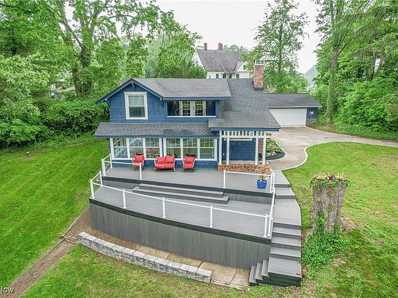 Enjoy lake living in this stunningly remodeled waterfront home! Step inside to the mudroom entry with a charming built-in for your coats and shoes. You'll love the fresh and modern kitchen with granite counters, shiplap walls, and stainless steel appliances. Large windows at the front of the home offer fantastic lake views from both the dining room and the living room with a wood burning fireplace. A convenient laundry and guest bath complete the main level. Upstairs doesn't disappoint with a master suite with en suite bath, two secondary bedrooms that share a remodeled full bath plus a bonus room, perfect for an office with French door access to a covered balcony with a view of the water. Outside amenities include a covered patio and tiered deck for hosting friends and family, a nice yard for outdoor games and a dock for your boat. A new 2 car garage and concrete driveway add plenty of space for parking. In addition to the house being remodeled down to the studs, this home also has a newer roof, windows, well, septic, concrete and garage. Don't miss this Portage Lakes beauty!