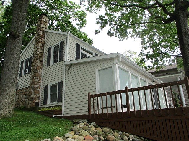 This professionally remodeled cottage can fit as a summertime getaway or call it home! Almost everything is new inside and outside. There are 3 bedrooms and 2 bathrooms, the basement is complete finished into a open concept kitchen, dining and living area. The deck overlooks the lake with spectacular views! Concrete seawall and sandy beach await your family, friends and guests! Sit on the front desk in the morning and enjoy the sunrise! There is plenty of parking along the park and there is a large 2 car garage. Minimal outside upkeep on this 40' lot! Taxes do not reflect homestead.