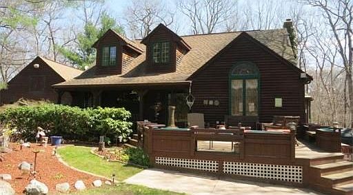 WATERFRONT location on Brigg's Pond. Fish, swim, skate, or boat from your backyard. Wood floors throughout.Granite counters in kitchen.Hexagon hot tub room. second floor laundry. French doors separate the LR and FR. 4th bedroom also makes a great office. Home was converted from electric to oil in 1996. Water has purifier and softener systems. 16x20 Mahogany deck leads to a concrete patio. Great mudroom separates the garage from the kitchen. HOA fee is yearly. Close to Borderland State Park!!!