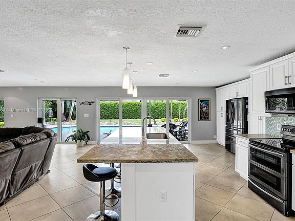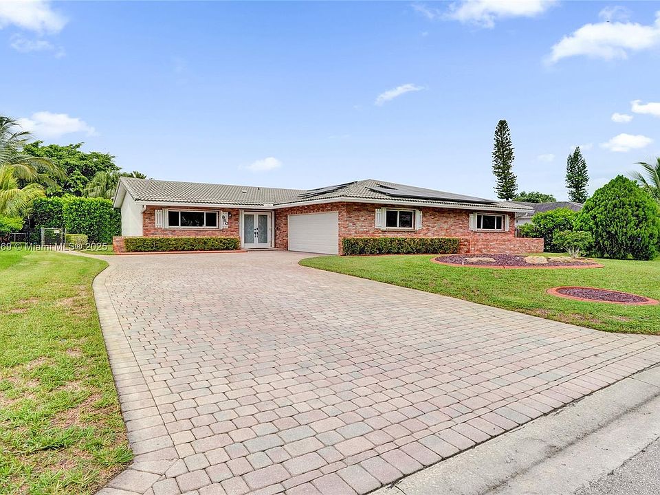 Welcome to your private oasis! This stunning 5 bedroom, 2.5 bath home features an updated open-concept kitchen, expansive living area, perfect for entertaining or relaxing. The huge primary bedroom boasts a walk-in closet and serene pool views, while both bathrooms are upgraded. Main areas shine w/tile flooring & bedrooms feature high quality laminate. Step outside to a backyard paradise w/a large covered patio, sparkling pool & lush greenery. A concrete slab is ideal for a tiki bar or shed in the back as well. Accordion shutters throughout, solar panels, AC 2021, washer & dryer 2020, water heater 2022 & electrical panel 2024. This home combines beauty, comfort & peace of mind. Centrally located near top schools, restaurants, shops & highways. Truly a must see!