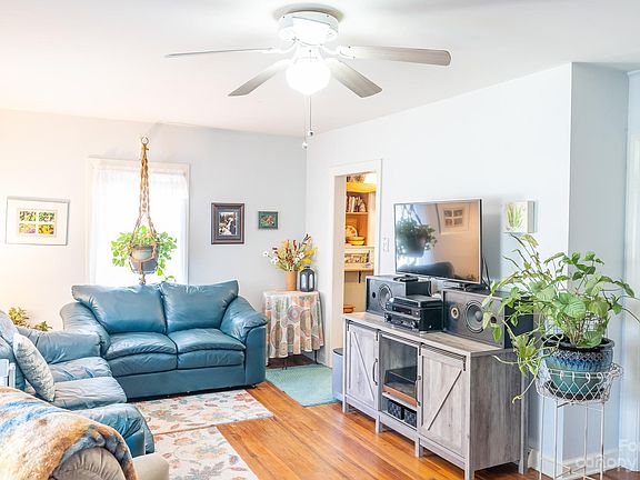 An abundance of classic charm can be found throughout this 1920's ranch! This beautifully maintained home has hardwood floors, huge rooms, true 2 car garage and plenty of outside spaces for enjoying the cool mountain air or entertaining family and friends! The bright eat -in kitchen is more than substantial with tons of counter space , built ins and spills out on to the massive covered back porch/carport !! Ample yard with fenced raised bed vegetable garden, fruit trees (plums, apple & cherry) and your own private "hidden garden" in the front! The full unfinished basement has storage galore, high ceilings and complete with sizable workshop & utility sink! !! SOLAR PANELS with warranty to offset your electric bills- July 2023 bill was only $20with A/C running all month! This home is truly enchanting!!