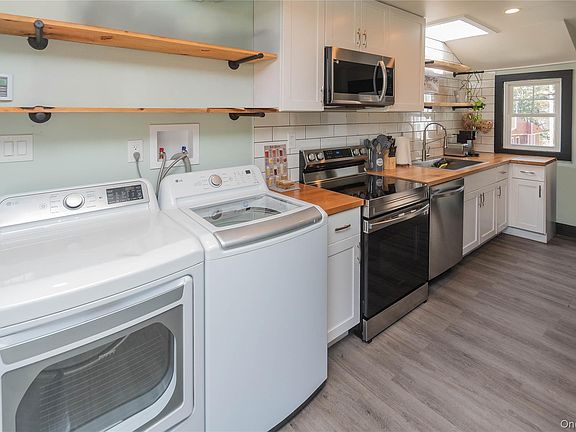 Inside, the home features a bright and open layout with plenty of natural light throughout. The kitchen is well-equipped with matching stainless steel appliances, ample cabinetry, and generous counter space—ideal for both daily living and entertaining. The adjacent dining area offers easy access to the expansive back deck, where you can enjoy sweeping views of the serene landscape. Whether you're having your morning coffee or relaxing at the end of the day, this outdoor space offers a peaceful setting to unwind.