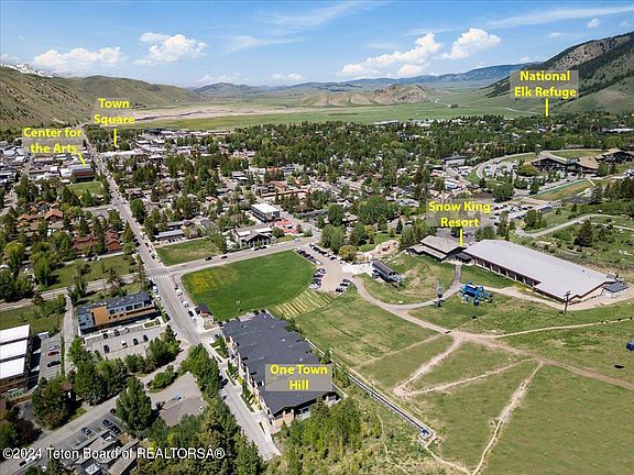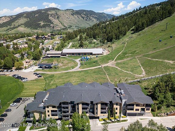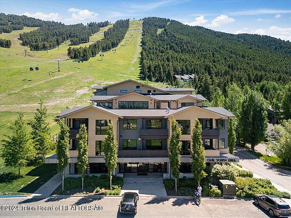 As the largest 1 bedroom condominium in One Town Hill, this premier top floor unit has tall ceilings and a spacious floor plan. The unique south facing windows allow extra sunlight and a great view of skiers racing on the slalom course in the winter, while also providing privacy and a wooded view from the bedroom and balcony. Tastefully designed with high end finishes throughout, this distinct unit features a gourmet kitchen with top-of-the-line appliances, custom walnut cabinetry and marble countertops, eco-friendly hardwood flooring, a gas fireplace, wired surround sound, remote controlled window shades, and a heated patio. One Town Hill is a newly built luxury residence located slope side at Snow King Mountain in downtown Jackson Hole offering direct access to outdoor adventures including hiking, biking, and skiing at Snow King Resort, all right outside your door. Owners will also enjoy a variety of building amenities including a private fitness center, secure intercom entrance, dedicated underground parking space, large owner storage closet (6' x 8') and elevator access.