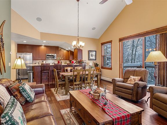 STUNNING 3 BEDROOM/3 BATHROOM CONDO ON MAIN STREET WITH SKI AREA VIEWS- Experience luxury and convenience in this west-facing condo, offering breathtaking ski area views and spectacular sunsets. Situated right on Main Street, this property provides easy walkability to shops, restaurants, bars and more. Recent upgrades include elegant bamboo floors throughout, vaulted ceilings, modern lighting, and luxurious leather matte granite countertops in the kitchen and bathrooms. "Resort Zone" ensures strong rental potential year-round, making it a fantastic investment opportunity. As an owner, you and your guests will enjoy all the perks of the Pioneer Club membership, which includes convenient ski and bike storage, access to the outdoor heated pool and locker room facilities. The condo also comes with a private 1-car garage for storing all your gear and an in-unit washer and dryer, making it perfect for both seasonal living and extended stays. Don't miss out on this exceptional property- perfect for both personal use and rental income!