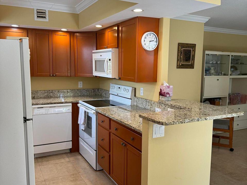 2/2 1st floor light & bright condo,with newer enclosed patio with a/c or slideopen the windows for fresh air.Tile through out condo,updated open kitchen with high hats, built in microwave.2 full baths,updated stepin shower.Ceiling fans in bdrs & patio.Both bdrs have sliders leading out to to the patio for easy access. Secure Patio door leads right out to your parking space with easy paved walkway ramp with no stepdown.Condo is Located near the Monaco clubhouse entrance with cafe & pool or easy access to the Main Clubhouse with indoor/outdoor pools, two restaurants, theater, tennis/pickel ball free bus service,Golf course, clubs, gym ect.Condo is very close to Atlantic Ave, both major highways,house of worship, deli's 3 publix shopping centers, cvs,wallgreens approx 6 miles to the beach