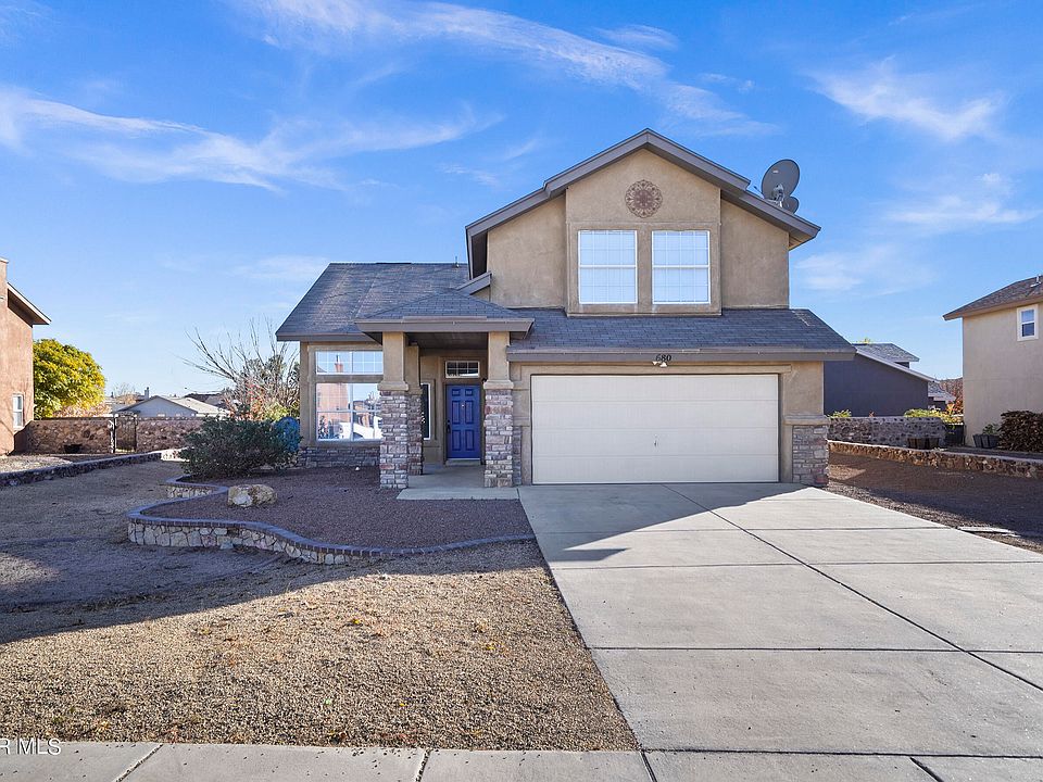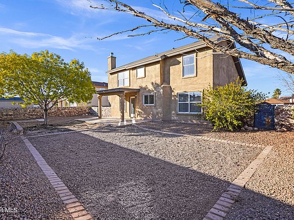 Charming 2 story 4 bedroom, 2.5 bath home! Freshly painted interior, clean laminate flooring, space for RV on this 8,083 SF lot with no backyard neighbors. Great tucked away Upper Valley neighborhood in west El Paso with nearby easy access to I-10. The stone accented front adds character and charm while boosting the home's curb appeal. Wonderful open layout with vaulted ceilings offers a fresh welcoming ambiance. Step up the beautiful staircase to all 4 bedrooms or downstairs to the open kitchen with island and pantry. Huge primary suite includes a great walk- in closet and dual vanities. Flexible layout offering 2 living room areas perfect for spending time with the family. Schedule a time to view this home now!