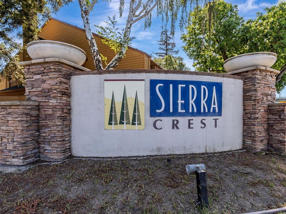 Beautifully updated 1-bedroom, 1-bath condo in the popular Sierra Crest community, located in the heart of Silicon Valley. This desirable upstairs end-unit in a two-story building shares only one wall, offering exceptional privacy and tranquility. The south-facing layout welcomes abundant natural light, with tall trees adding shade and seclusion. The functional floor plan features a spacious living room, dedicated dining area, and a well-appointed kitchen with granite countertops, rich cabinetry, and Travertine tile flooring. Sliding doors lead to a private balcony with additional storage. The bedroom offers a large walk-in closet, and the in-unit washer/dryer adds everyday convenience. Additional features include new soft-tone interior paint, dual-pane windows with treatments, and split A/C units in both the dining area and bedroom. Assigned covered carport plus ample guest and street parking. Community amenities include two pools, a fitness center, and clubhouse. Convenient to Santana Row, Valley Fair, City College, and major freeways including I-680, 880/17, and San Tomas Expressway.