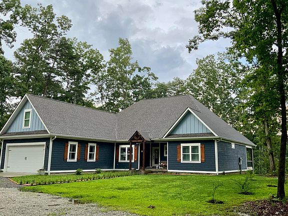 Discover this stunning custom-built home, just three years old, offering 2,690 ft.² of exceptional living space on 20.3 acres of picturesque land. This three bedroom 3 1/2 bath home boasts an open concept design with breathtaking southeastern views of the Tennessee river and Alabama from the 10x38 covered back porch. Crafted with care Inside the chefs kitchen features custom cypress wood cabinets, granite countertops and a high-end Thermidor gas cooktop with an electric griddle perfect for culinary enthusiasts. The 26 x 13 upstairs bonus room with a full bath provides flexible space for a home office, guest suite or entertainment area. Designed for efficiency this home includes a fully encapsulated crawlspace with French drains, sump pump and alarm system and a dehumidifier, a tankless water heater for the primary suite side and a 50 gallon electric water heater for the right side of the home.