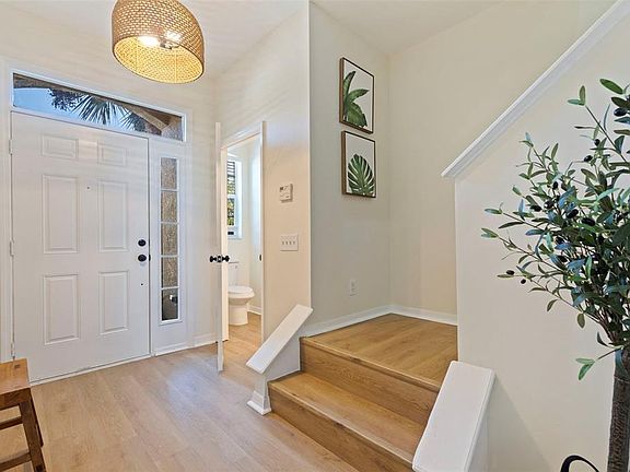 Modern light fixturesNew blindsOne-car garageVibrant greeneryFresh interior paintMature treesAdditional driveway parking