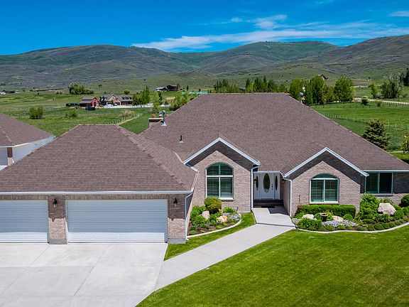 Sitting at the foot of the spectacular Uintah Mountains is a fabulous home, perfectly located on the very desirable north bench of Oakley. This home is meticulously kept, inside and out, and shows pride of ownership in every detail. Cozy interior, a wonderful kitchen with top shelf appliances, custom cabinets and silestone quarts counter tops. A great living space for you and property for your horses. The floor plan is very comfortable and supports single level living with the master suite and bedrooms on the main level. It also has a great family room area up for the kids get-away. The home sits on 5 pristine acres planted in grass hay complete with pressurized irrigation and Includes 7 shares of New Field and North Bench Irrigation Co. There is a huge 3 car garage AND a 1000 square foot RV garage/toy barn/shop with 220 V for tractors, trailers, motor homes and more. This home is neat as a pin and a pleasure to show, a must see.