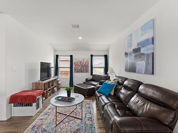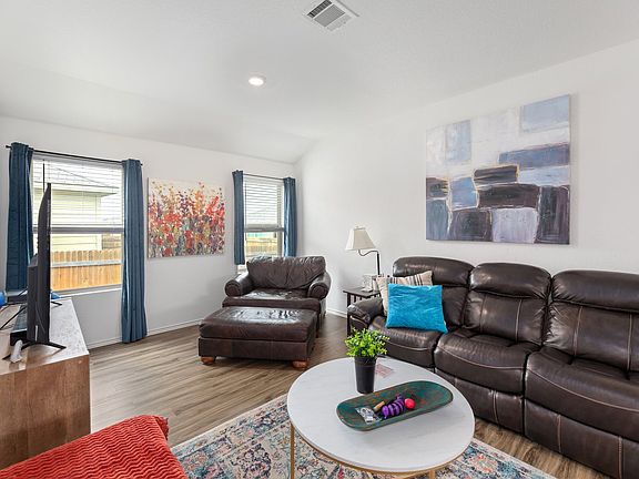 Functional layout with great utilization of space with this three-bed, two-bath home in Sonterra. The open-concept kitchen includes quartz countertops and stainless steel appliances. Luxury vinyl plank flooring in the main living areas. The like-new washer, dryer, and refrigerator will convey with the home. Enjoy whole home automation with Alexa functionality installed. The quaint covered back patio overlooks what is potentially the largest backyard in all of Sonterra. Plenty of room for family living and/or entertainment! Enjoy great access to I-35 and the 130 Toll Road and the great amenities found within Sonterra S/D.