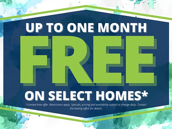 - Special offer! Harvest the best deals before they're gone! Up to One Month Free on select homes! *Restrictions apply. Specials, pricing and availability subject to change daily. Contact the leasing office for details.