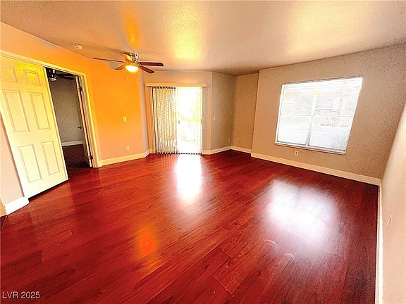 Modern bathroom remodelLarge master bedroomPrivate covered patioWalk-in closetWooden flooringGranite counter topsFresh paint