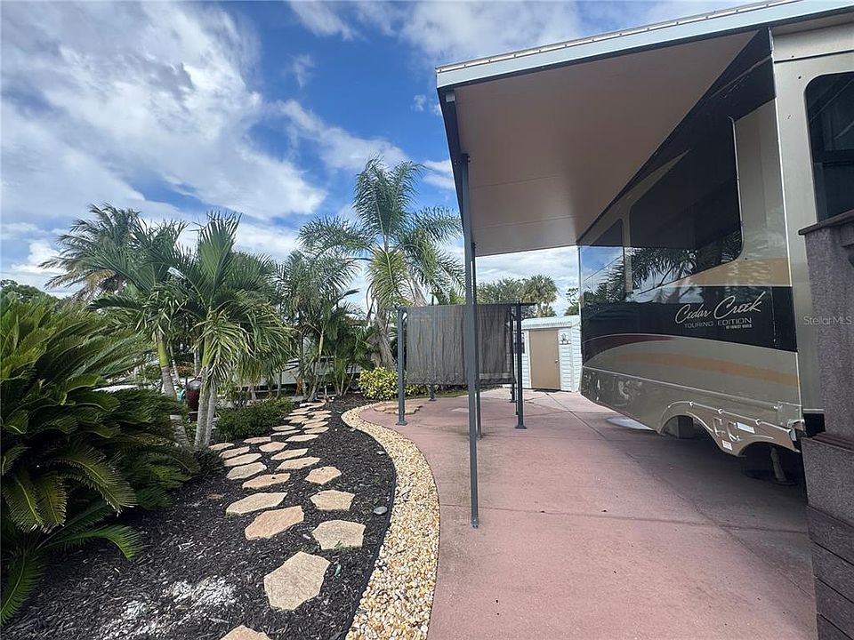 Welcome to carefree living in this gated 55+ RV community—where you own your lot outright and enjoy the perfect balance of comfort, convenience, and community! This beautifully landscaped property features a paved driveway and a 2013 Cedar Creek Touring Edition by Forest River RV. The RV has been thoughtfully updated with a commercial-grade VPF roof, a brand-new 2024 A/C unit, new LPV flooring, and fresh paint—just waiting for your finishing touches to make it your own. A storage shed is included on the lot, providing extra room for tools, outdoor gear, or hobbies. For added convenience, the property sits directly across from the community laundry facility, which also offers three additional bathrooms with sinks, toilets, and showers—perfect when family or guests come to visit. The community itself boasts a low monthly HOA fee that covers access to a sparkling pool, relaxing hot tub, and a brand-new recreation center/clubhouse, projected for completion by the end of 2025. As an added bonus residence can request an extra storage lot (The current residence has access to lot 66) that is fully mowed and maintained by the community—giving you even more space and flexibility. Don’t miss this opportunity to own a slice of Florida paradise in a vibrant, active-adult community!