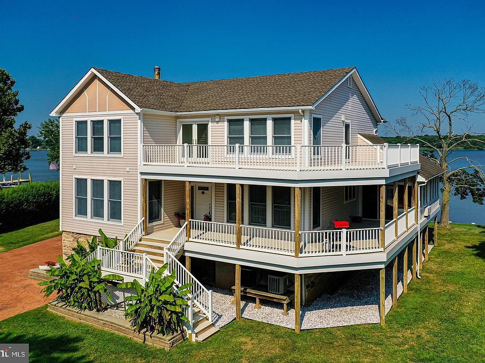 Welcome to the home of 6800 Gunder Ave, the meticulously crafted waterfront gem sits in the West Twin River neighborhood of Baltimore County****Upon entry the main floor is the foyer and hallway with refinished wood flooring, with the dining area to the right, an office to the left****On the left of the hallway is a custom half bath with specialty nautical themed sink and toilet****The third bathroom was added in 2023 to provide extra convenience****The hallway divides into an expansive living room with extra high two-story ceilings and massive windows that frame the waterway and sunsets beyond****The large gourmet kitchen is fully equipped with all appliances, including wall oven, cooktop, and custom finished sub-zero refrigerator****Large Corian countertops and massive breakfast bar give plenty of room for prep and casual dining while admiring the view****The custom cabinetry has been newly refinished, and the backsplash is made of rolled marble****A door off the right of the living room leads to an unique room of ceramic tile flooring, vaulted ceilings, eating crabs while enjoying the spectacular views for the families or friends***On the left of the living room is a short hallway that leads to the main floor owner’s suite****The owner’s suite, as well as the living room, both have sliders that open out onto the waterfront deck. Along with the view, the owner’s suite hosts walk in closets as well as its own large custom bathroom****Amenities in the bathroom include double vanities, make-up station, roomy shower with custom frameless glass door, jacuzzi tub with waterfall spout and custom fixtures throughout****The upper floor has 4 decent size bedrooms. Two of these rooms are bedrooms with walk-in closets, and a bathroom that connects between them, each side has its own private toilet/sink area, and a shared tub/shower combo in the middle****The other two rooms could serve as guest rooms, offices, hobby/craft rooms, workout rooms, playrooms etc.****There is an overlook in the upstairs hallway that looks down into the living area and out at the massive architectural windows onto the water beyond****Atrium doors off the second-floor hallway, and a single door on the other side also lead to a second large wrap around balcony giving you a panoramic view of the waterfront and neighborhood surrounding****Stairs down to the first-floor lead to a large unfinished area that holds tons of shelving, cabinets and a workbench. There is no shortage of storage here! A door from this floor leads into the carport, and sliders off the back exit out into the waterfront backyard****Please show it today and your clients will not be disappointed****