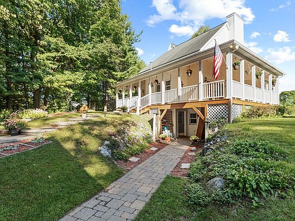 If you've been in search of the perfect Leelanau County home, this could be it! Centrally located just a bit north of Cedar, on the corner of two quiet rural byways, this lovely farmhouse style home is perched on a small knoll with views of the rolling countryside from it's expansive wrap around porch and it's three generously sized bedrooms. The culinary inclined in the family will appreciate the large island kitchen and newer stainless steel appliances, whilst the others may enjoy the cozy warmth of the centrally located wood stove in the living room that's tucked into a massive brick alcove. Spacious main level master/primary suite, with two huge bedrooms on the upper level, one with its own private balcony, both with lots of closet space. Lots of fun to be had in the lower, walk out level that features a media/family room with gas fireplace and wet bar area, craft room, full bath with shower, and plenty of space for an in home office, or two. Detached, oversized, three car garage with a wood stove, storage trusses for additional capacity, and water line, AND.... a 36x48 pole barn with 14x14 overhead door, perfect for the higher profile boat, RV, or excavating/landscaping equipment. Water is sourced to the pole barn too, and it has a separate driveway off Narlock Road. The property features a lovely woods with a mix of mature hardwoods and white pines, combined with open areas, perfect for gardening, a hill for sledding, a wonderful combination!