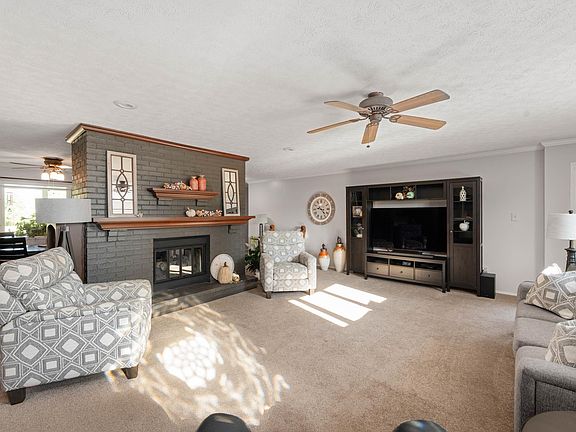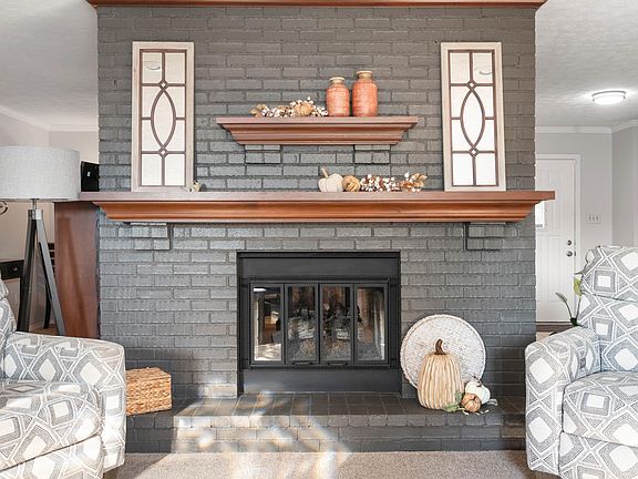 Beautifully updated and well-maintained brick home situated on 6 acres, featuring a welcoming 22x11 covered front porch and three spacious rear decks great for outdoor enjoyment. Inside you’ll find a lovely, updated kitchen with lots of cabinet and solid surface countertops, crown molding throughout, and a cozy double-sided gas fireplace. The large owner’s suite offers a beautifully updated tiled walk-in shower with double sinks. The large 2-car attached garage provides a utility sink and newer garage doors replaced in 2022. A large, fully insulated 90x30 pole barn with two heaters, an Atlas car lift, office space, and upstairs storage. 2nd and 3rd bedroom has been opened up with a walkthrough, but could easily be drywalled back in.