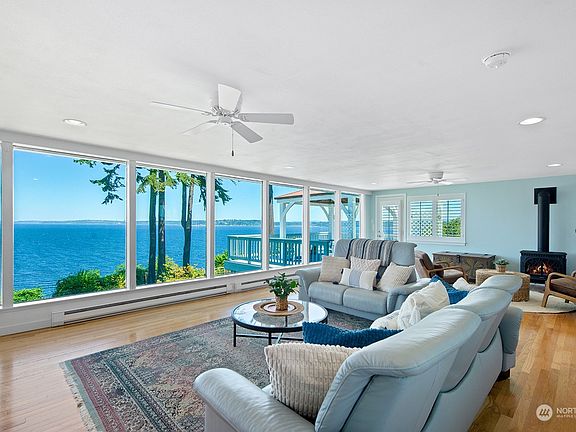 Prepare yourself for breathtaking panoramic views from this 100’ high bank waterfront home. Situated near town on coveted Maury Park Road, this turn-key home spanning 2960 sq. ft. with 4 bedrooms & 2 baths is amplified with two levels of unparalleled views, each with a kitchen & separate entrance, ideal for multi-generational, weekends or vacation rental opportunities. Main level features a huge deck with gazebo, perfect for savoring mountain ranges, mesmerizing Puget Sound shipping lanes & city skyline with Mt. Baker as a backdrop. The lower-level flows out to the fenced yard & patio for an enchanting, colorful retreat. This home offers a rare opportunity to experience the epitome of island life & living like you’re on vacation every day!
