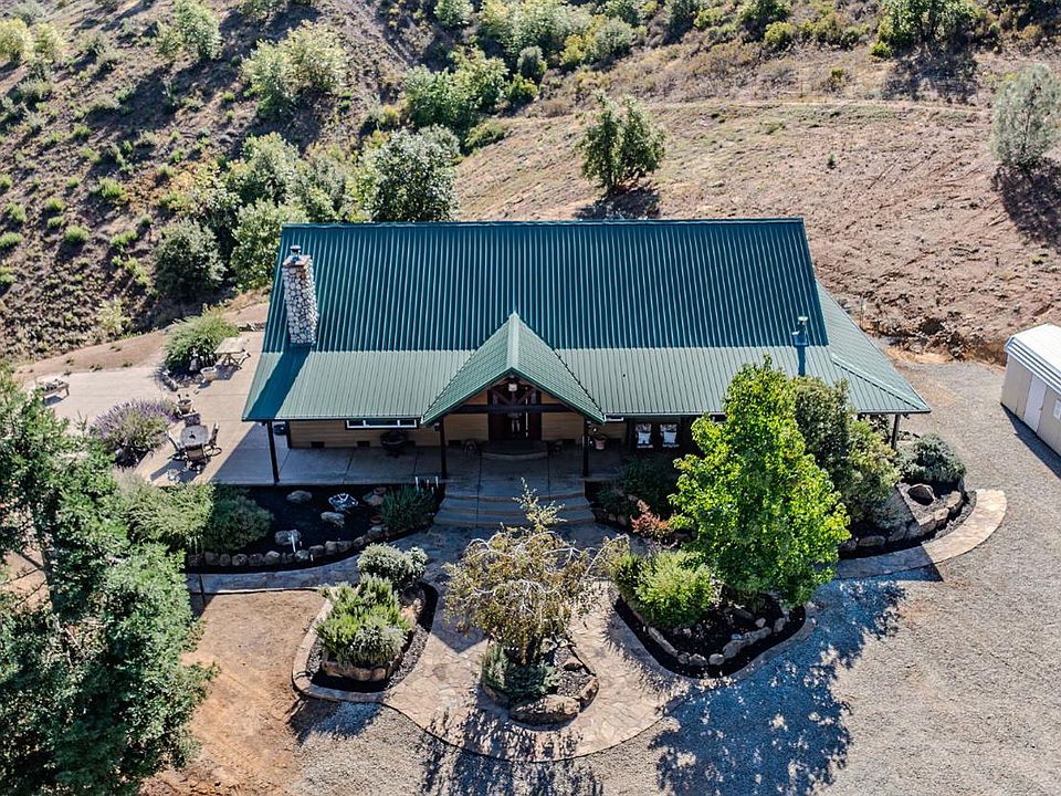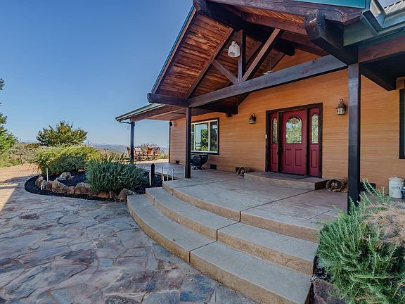 One of a Kind - Custom built home located on 40 acres with amazing views & privately gated. Backs up to BLM land. 2 x 6 construction - Milgard windows. Spacious kitchen with stainless steel appliances including dishwasher, gas range, microwave, refrigerator & beverage refrigerator. Great room with rock hearth & woodstove - flat rock brought in locally. Wired for surround sound. Amazing views from great room & kitchen. Spacious master suite with access to patio area - large walk-in closet with a number of built-in drawers. Dual sinks - walk-in shower & jetted tub. Interior laundry which includes washer & dryer. Built-in desk area and cabinets in hall. Some landscaping in front & nice concrete patio area for entertaining & sitting out enjoying the views. Generac back-up generator. Additional permitted storage cabin dating back - great for family visiting or in-law quarters. Large storage shed. Too many amenities to list. Video -- https://vimeo.com/1126470197?fl=pl&fe=sh