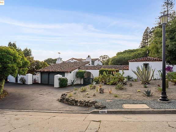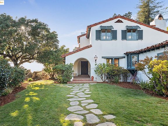 Exquisite 1928 Spanish Revival estate by renowned local architects and engineers Reed & Corlett, this grand and distinguished residence evokes an era of timeless craftsmanship and historic artistry. Perfectly poised along the Piedmont border in one of Oakland’s most prestigious enclaves, the property spans over half an acre of level, enchanting gardens amongst majestic oaks, offering serenity, privacy, and sweeping Bay views from nearly every vantage. Enjoy level-in entry to an expansive 5-bedroom, 3.5-bath primary residence, where a brilliant floor plan allows graciously proportioned formal spaces to flow effortlessly together, all bathed in natural light and enriched with period detailing throughout. A breathtaking Great Room of heroic scale, crowned by soaring hand-hewn beams, commands a sense of romantic permanence, while the formal dining room, adorned with hand-painted artesonado ceilings, showcases the artistry of its era. Beyond the main home, a private ensuite casita, artist’s studio, and convenient level-in 3-car garage complete this regal property—uniting architectural pedigree with refined livability for today’s modern lifestyle. Minutes from Montclair Village, Park Blvd, and SF/Hwy access. A rare legacy estate for generations to come.