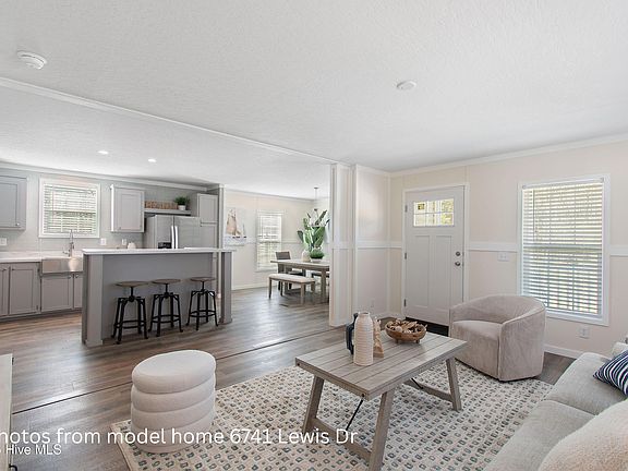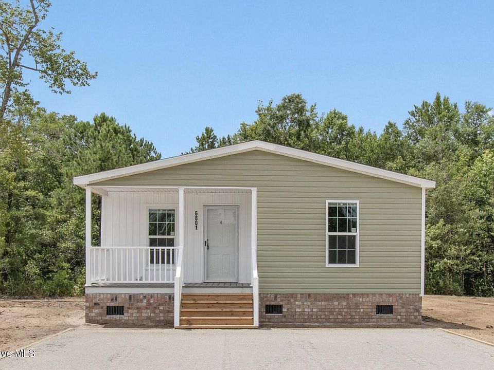 Welcome to Lewis Acres—where spacious new homes, large lots, and no HOA fees combine with the simplicity of coastal living. Located at 6801 Lewis Drive, this brand new Champion Home sits on a generous 1.2-acre lot and features its own private well and septic system. With no HOA and minimal monthly costs, you'll enjoy true freedom and practicality just minutes from local towns, 10 minutes off Hwy 17, less than 20 minutes to shopping and dining, and multiple beaches within a short drive. The Chapel Hill model offers a brick foundation and a bright, open floor plan with three bedrooms and two full bathrooms. The kitchen comes fully equipped with stainless steel appliances, including a refrigerator, stove, microwave, and dishwasher. Unwind on the cozy front porch—perfect for quiet evenings—and enjoy the flexibility to bring your RV, boat, or add outdoor storage buildings. This home is the perfect blend of comfort, space, and affordability near the coast.
