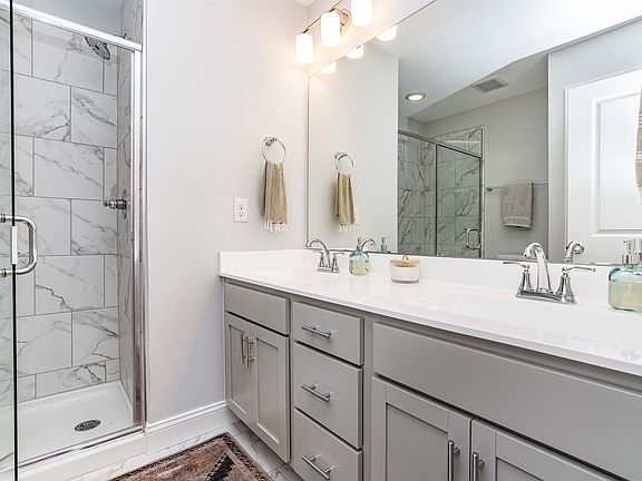 Upstairs you will first find the warm and welcoming primary bedroom with wall of windows, and double owners closet. The en-suite bathroom includes a double vanity sink, a walk-in tiled shower, and a private linen closet. Headed down the hallway, you will find the laundry closet (laundry machines INCLUDED in rent) on your left and secondary bedroom at the end of the hallway. This beautiful room includes an accent wall and is connected to a full bathroom with tub/shower combo that jack-and-jills with the hallway. Heading up the stairs to the 3rd floor, you will find the 3rd bedroom that can be used as such or any format that you'd like - office, bonus room, gym, etc.