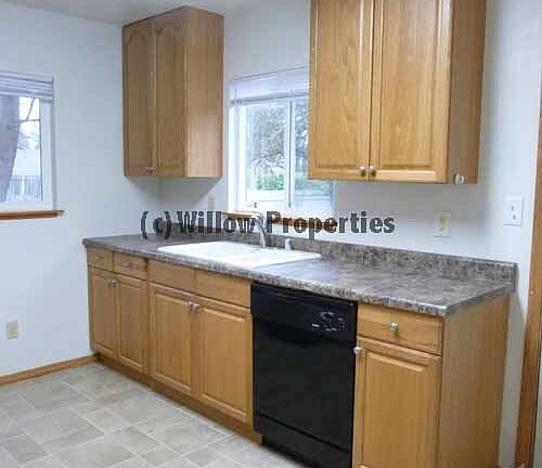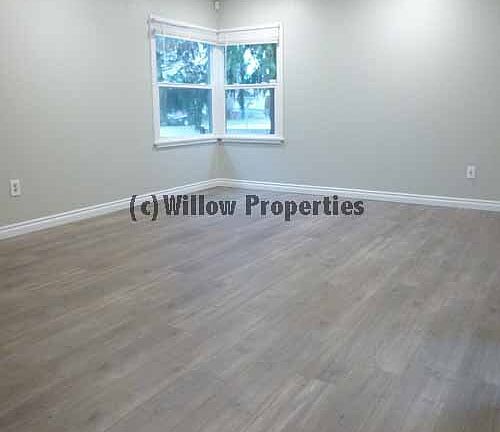 Remodeled 2 Bedroom home with laminated floors and carpet in bedrooms. Master bedroom with large closet/vanity area and built in drawers. Spacious yard with deck and partially fenced. Large detached garage for extra storage. Tenant pays utilities.