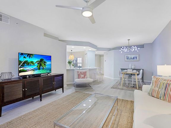 Amazing luxury-style condo located in the desirable North Naples community of Calusa Bay. This first-floor home features 2 full bedrooms and 2 bathrooms. The space was just renovated and is sure to impress. The split floor-plan is very functional and has been tastefully appointed with beautiful fixtures and high-end furnishings. Enjoy carpet-free living with luxury vinyl flooring throughout with ceramic tile in the bathrooms. The kitchen has been finished with custom wood cabinets, sleek quartz countertops, and stainless steel appliances. Outside, you have a fully screened-in lanai, with tranquil lake views. Calusa Bay is a quiet, gated, North Naples Community of condominium residences. Only two miles from the beach, the community sits on 54 acres of lush landscaping. Seven beautiful lakes and 21 lighted lake fountains ensure that each lanai has a breathtaking view. The community features many amenities and is very social and active. Residents will enjoy a clubhouse, swimming center, exercise facilities, tennis courts, and a 2-mile walking trail. Shopping, dining, and countless Naples destinations are minutes away. Water, sewer, internet, basic cable, trash, irrigation water, exterior pest control, and lawn maintenance are included in the rent. ** Sorry, no pets. ** * Last month's rent may be required. *