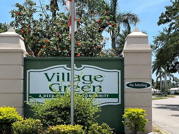 One or more photo(s) has been virtually staged. Enjoy the ultimate Florida lifestyle in this popular 55+ Village Green paired villa, ideally situated on a quiet cul-de-sac in West Bradenton—just 5.7 miles from the beautiful beaches of Anna Maria Island. This welcoming community is not in a flood zone, offering peace of mind along with a relaxed coastal vibe. Step inside and discover 1,913 square feet of air-conditioned living space with an inviting glass-enclosed Florida room overlooking a tranquil greenbelt. The open, spacious floor plan features two oversized bedrooms with generous storage, a bright living and dining area, an eat-in kitchen, and a two-car garage. A charming wrought iron gate secures the front entry, adding both privacy and appeal. Recent updates enhance the home’s comfort and style, including a new tile roof, updated windows, granite kitchen countertops, a stainless-steel double sink, and pull-out cabinet drawers. The kitchen also offers a large pantry with pull-out shelving. Both bathrooms have been tastefully renovated, and the home features fresh interior paint and new laminate flooring throughout—no carpet. Laundry is conveniently located just off the kitchen, and the unit comes equipped with a water system. This land-owned property includes a $350 monthly condo fee (paid quarterly), covering basic cable TV, internet, exterior painting, annual roof cleaning, common area taxes, community amenities, escrow reserves, grounds maintenance, landscaping, exterior pest control, and pool upkeep. Centrally located, the villa offers quick access to shopping centers, medical facilities, a wide array of restaurants, G.T. Bray Park, Robinson Preserve, the Downtown Riverwalk, and the Gulf beaches. Nearby airports include Sarasota Bradenton, Tampa, and St. Pete. For your private showing, contact the listing agent today.