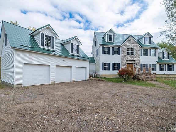 Welcome to this grand colonial estate set on a stunning 10-acre lot with a tree-lined, estate-style driveway offering privacy and charm. Every room in this impressive home is spacious and full of potential — truly mansion-sized! The open-concept floor plan features expansive living and dining areas filled with natural light, creating a bright and inviting atmosphere. The kitchen area flows seamlessly into the main living space, making it perfect for family gatherings and entertaining. Just off the foyer, you’ll find a large formal living room or home office, ideal for working from home or hosting guests. A newly added breezeway (needing completion) connects the home to a generous garage with an insulated loft above — perfect for additional living space, a studio, or extra storage. Upstairs, two master suites each feature full en suite bathrooms, providing comfort and privacy for family or guests. Two additional large bedrooms offer plenty of space for everyone. The third level is a massive bonus area with a loft, ready for your imagination — think playroom, gym, or creative retreat. The huge 9-foot ceiling basement offers endless possibilities for finishing, and a brand-new forced-air HVAC system ensures modern comfort. The home also features a durable metal roof.