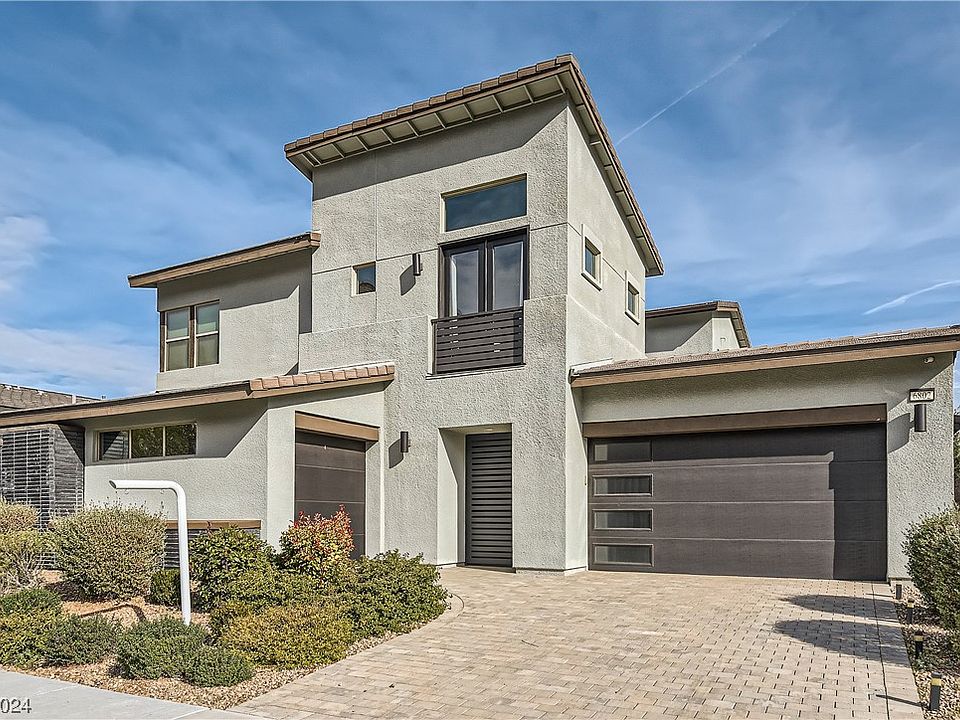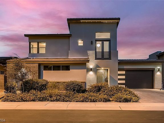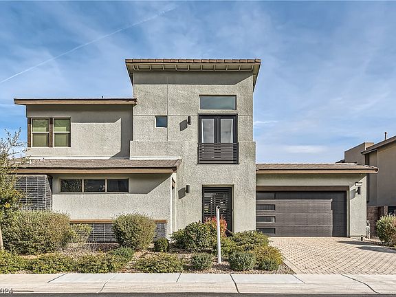 The exclusive gated community of NOVA RIDGE! The beautiful 2-story modern home is conveniently located in South Summerlin. This spacious home features 4 bedrooms with a den, 3 full bathrooms, 2 half bathrooms, 11'x8' multi-sliding doors, covered patios, a modern pool and spa in the backyard, a 3-car garage with epoxy flooring, upgraded flooring, a gourmet kitchen with quartz countertops, flat panel soft-close cabinets, built-in stainless steel appliances. With soaring 20ft. ceilings in the great room and open-concept living, this home is perfect for entertaining. The primary bathroom features a super shower with tile to the ceiling, dual walk-in closets, and dual floating vanities. Don't miss out on this fantastic property in the most convenient location!