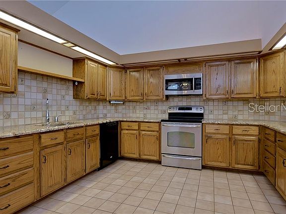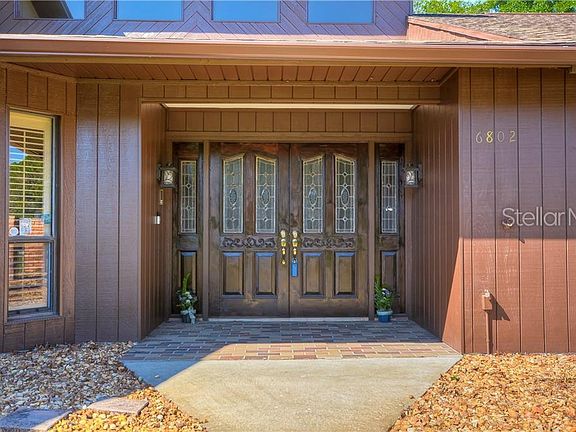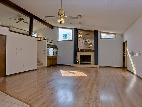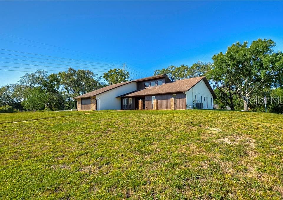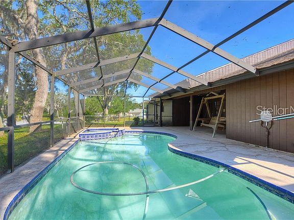 Amazing floorpan! This spacious tri-level 3/2/2 pool home is centrally located in the heart of Trinity and zoned for A rated top schools. It sits on an oversized 1.1 acre corner lot with no neighbors on either side. Beautiful hardwood double door entry into the foyer area. A/C NEW 2014. New carpet in master/second bedroom. RV's and boats are welcome in this non deed restricted community. The extended wrap around driveway has plenty of room for the entire family. Home architecture is an absolute must see. Tri-level: Bottom floor is garage and roomy inside laundry w/utility sink, main floor is majority of the home with 22' soaring ceilings and upstairs is a huge loft area perfect for entertaining or playing. This space also has two oversized walk in storage area. Large kitchen with granite countertops and real hard wood cabinets, under cabinet lighting, peninsula island, built in desk, and built in wine rack. Master suite has vaulted ceilings, one standard size closet one walk in closet, double sink vanities sit at his and her heights, and a walk in shower. Two sets of French doors lead to the screened in pool area, which has a dedicated pool bath. Back yard has a portion of the property completely fenced in. Security system. Plantation shutters. Real wood burning fireplace. Wet-bar with sink. Fans in bedrooms. Sprinklers on well (no water bill for those), two ring cameras, one ring doorbell, outside motion lighting & invisible pet fence High/dry-NO flood zone. Oversized garage has workbench.