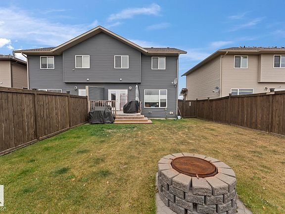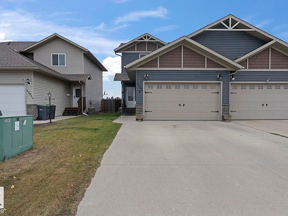 Modern,immaculate,completely finished and landscaped is just the start to this fabulous 1348 sft 2 storey home.Brand NEW vinyl plank flooring, A/C, electric fireplace & updated light fixtures.Front entrance is MASSIVE and flows through directly into open concept kitchen,living and dining room areas, all with 9' ceilings.Direct access to the deck(12X12) w/fenced yard,shed & underground sprinkler system front and back. Upgraded kitchen with stainless steel appliances,double oven,eat up island,pantry and granite sink.Main floor laundry and 2 piece guest bathroom.3 bedrooms on the upper level. Primary bedroom is spacious w/3 piece ensuite and walk in closet. 4 piece main bathroom with jetted tub. The lower level is completely finished with heated floors, 3 piece bathroom and the perfect space for a family room.Double attached HEATED garage with epoxy floor & excellent storage. Nothing to do but move in and make this your own. A+ location close to CFB Cold Lake and amenities and NO condo fees! It's a must see.