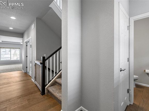 Welcome home to this meticulously maintained home in the heart of Banning Lewis Ranch! This 5 bedroom 4 bathroom 2 car garage home offers a ton of upgrades throughout the home! When you walk in, notice the beautiful LVP flooring leading you to the main level office with french doors and a lovely cove ceiling! Continue on to the huge great room with tons of natural light, all windows coverings included, beautiful stacked stone fireplace as well as a nice cove ceiling! The kitchen is perfect for gatherings with a huge quartz island with tons of cabinet space below, all stainless steel appliances are included, notice the beautiful gas stove! The kitchen offers convenient pull-outs with a pull-out trash cabinet! Notice the beautiful lighting as well as the extended kitchen counters/cabinets! Don't miss the huge pantry! This kitchen has everything the chef in your family could want! The dining area adjoins with plenty of space for your dining table! Walk-out to your large covered rear patio to enjoy those great Colorado days! Head upstairs to find a huge loft perfect for another living area, play area for the kids or whatever your imagination can dream! The master suite offers tons of natural light as well as a cove ceiling, ceiling fan and a beautiful attached bath with huge walk-in closet! There are two additional nice sized bedrooms on this level as well as a nicely appointed full bathroom! Head to the lower level to find two more bedrooms, a lovely full bathroom, a family room and a great wet bar perfect for entertaining! With A/C for those warm Colorado days, there is nothing to do here but move in!