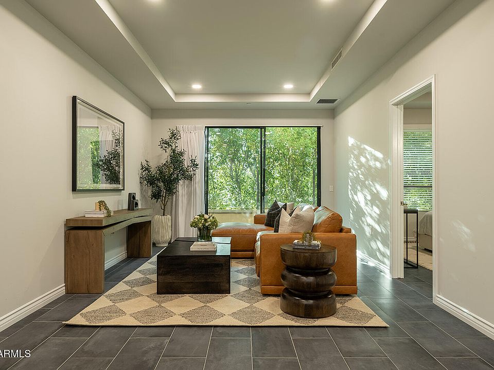 Sophisticated main-level condo at The Mark in Scottsdale featuring 2 bedrooms plus an office. This open-concept residence offers high ceilings, large tile floors, and a gourmet kitchen with granite counters and stainless-steel appliances. Enjoy seamless indoor-outdoor living with a private covered patio. The Mark provides resort-style amenities including a rooftop pool, fitness center, and concierge service—all steps from Old Town's premier dining, shopping, and entertainment.